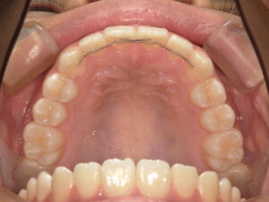 前歯の裏側に細いワイヤーを固定するタイプ。特に下の前歯の安定に優れており、ワイヤー+マウスピースのダブル保定を行う医院も多いです。