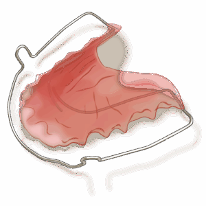 金属ワイヤーとアクリルプレートで作られた、昔からあるタイプ。症例に応じて「プレート→マウスピース」など段階的に移行することもあります。