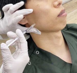 咬筋に少量のボトックスを注射し、筋肉の過剰な動きを抑制します。