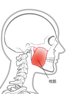 歯ぎしりや食いしばりを繰り返すと、顎の筋肉(咬筋)が肥大化します。