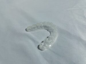 睡眠中の歯ぎしりによる歯の摩耗(すり減り)を防ぐには、ナイトガード(マウスピース)が効果的です。